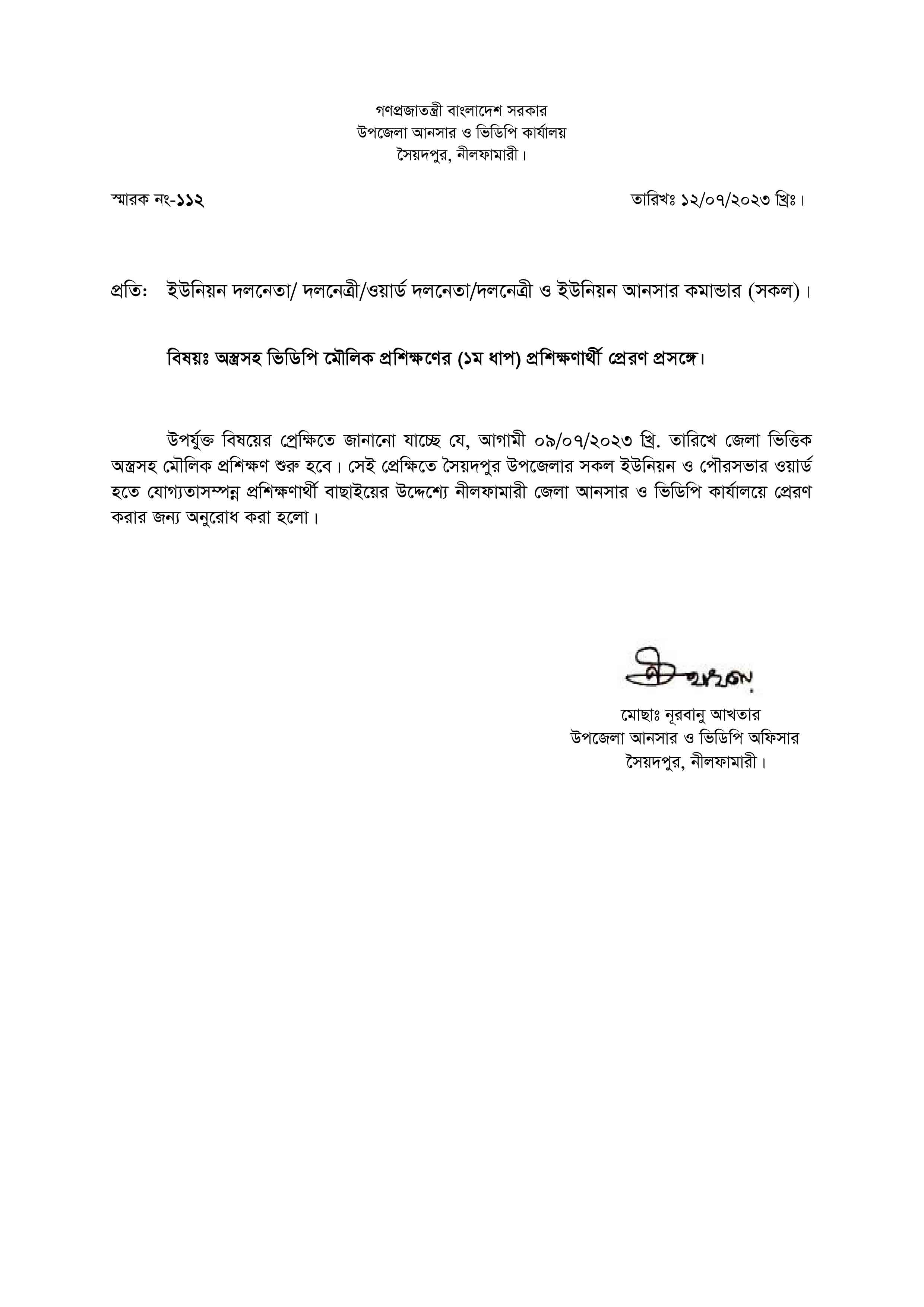 | ৩ | গ্রাম ভিত্তিক ভিডিপি মৌলিক প্রশিক্ষণ প্রসঙ্গে | ১৪-০১-২০২৫ | দেখুন | ||